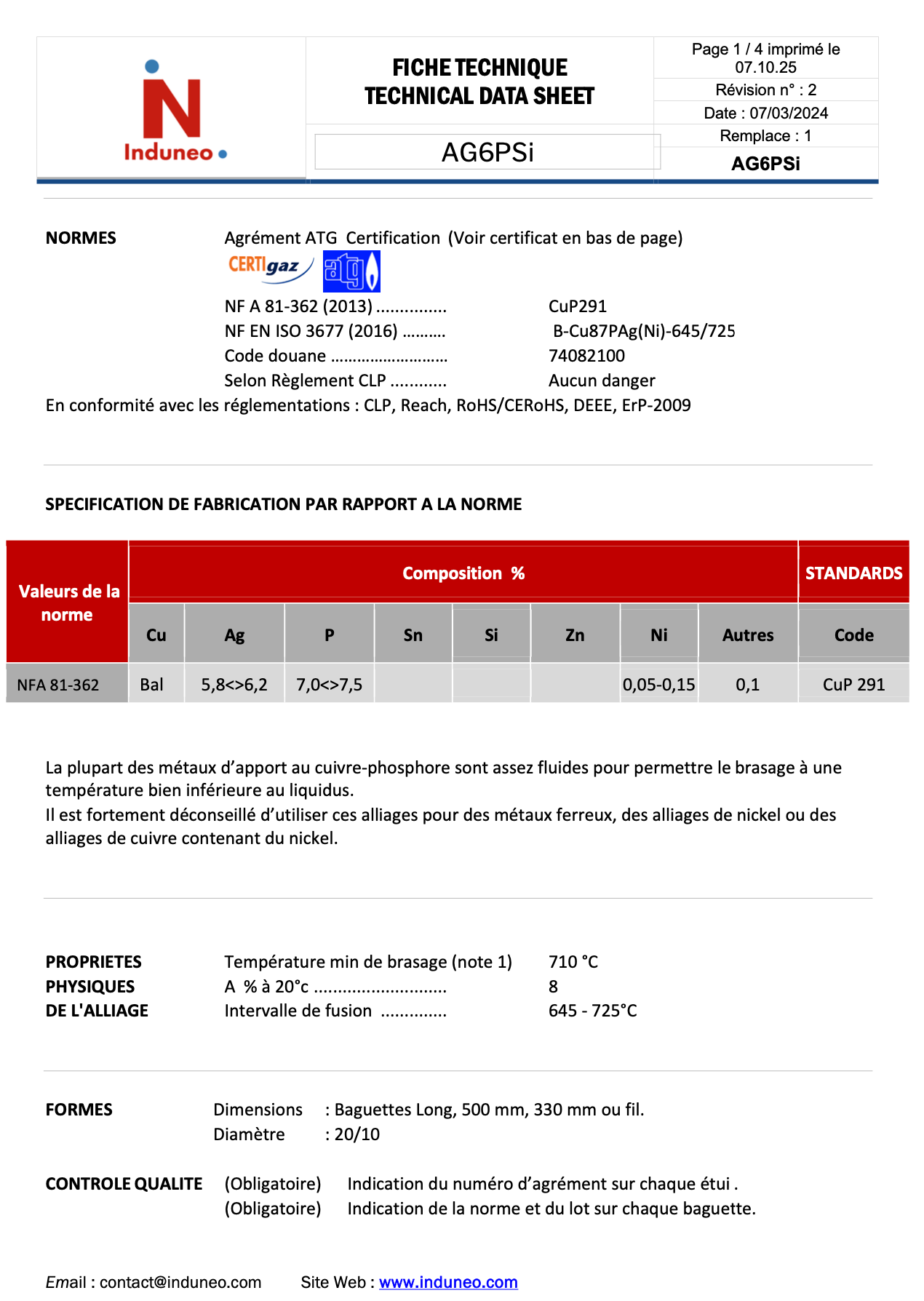 Caractéristiques techniques des alliages cuivre-phosphore et argent