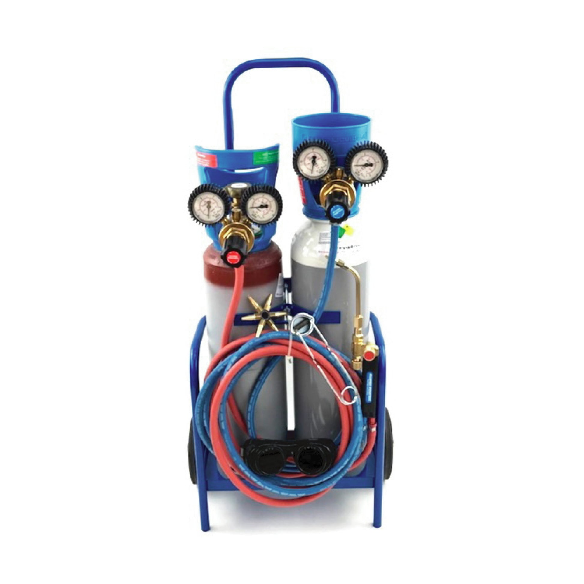 Équipement : Chariot mobile sur roulettes avec kit de brasage complet, livré monté et prêt à l’emploi (détendeurs à fixer sur les bouteilles).